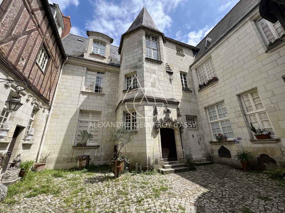 Son accès se fait par une ancienne porte cochère donnant sur une cour pavée, permettant d'admirer cette fabuleuse architecture des XVe, XVIIe et XVIIIe siècles avec sa pierre de tuffeau, ses tours octogonales, ses colombages, ses escaliers extérieurs à vis en bois, avant même d'atteindre l'appartement par son immense escalier à vis en pierre, vous êtes déjà sous le charme.